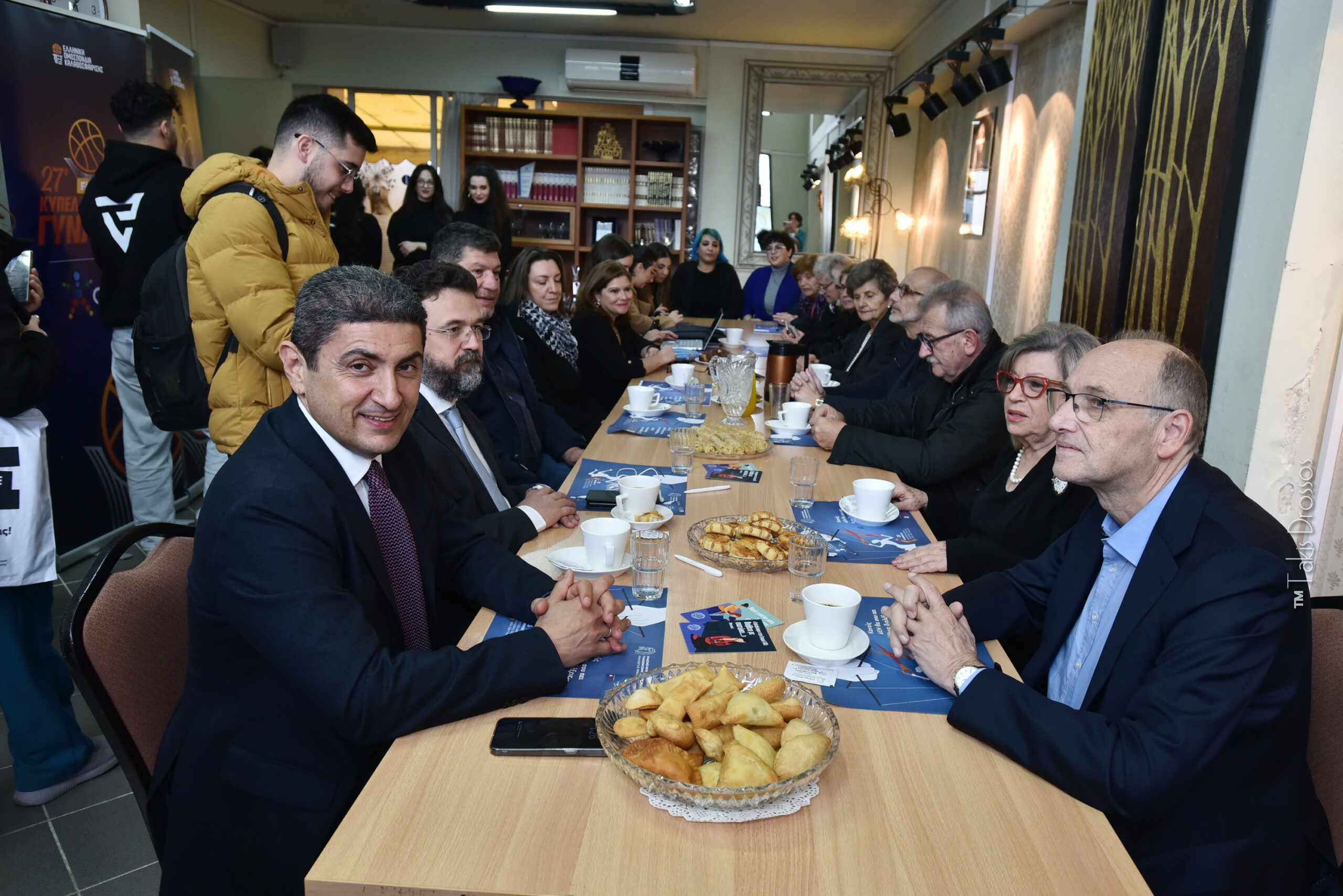 Υπογράμμισε, παράλληλα, ότι το θέμα της έμφυλης βίας και των κακοποιητικών συμπεριφορών αφορά και τον αθλητισμό. «Από τον ρόλο ευθύνης που έχει ο καθένας μας, όπως η Ελληνική Ομοσπονδία Καλαθοσφαίρισης, επιλέξαμε να ενισχύσουμε τον αγώνα κατά της έμφυλης βίας στη διάρκεια του Final 8 και τον Τελικό των Γυναικών, στηρίζοντας τον «Σύνδεσμο»», συμπλήρωσε. Παρέδωσε παράλληλα στην πρόεδρο του «Συνδέσμου» μία μπλούζα με τις υπογραφές των αρχηγών των Ομάδων του Final 8.