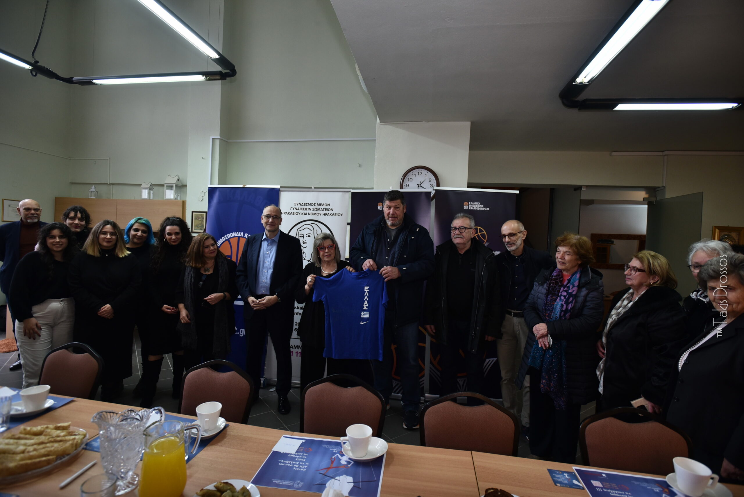 Την αμέριστη συμπαράσταση και έμπρακτη στήριξη της Ελληνικής Ομοσπονδίας Καλαθοσφαίρισης στο έργο που επιτελεί ο «Σύνδεσμος Μελών Γυναικείων Σωματείων Ηρακλείου και Ν. Ηρακλείου» με στόχο την αντιμετώπιση του φαινομένου της βίας και κακοποίησης εναντίων των γυναικών και παιδιών, εξέφρασε ο πρόεδρός της κ. Βαγγέλης Λιόλιος, στη διάρκεια επίσημης επίσκεψης που πραγματοποίησε σήμερα στα γραφεία του Φορέα στο Ηράκλειο, όπου συναντήθηκε με την πρόεδρό του κα Μαίρη Παχιαδάκη, παρουσία του υπουργού Αγροτικής Ανάπτυξης και Tροφίμων Λευτέρη Αυγενάκη.