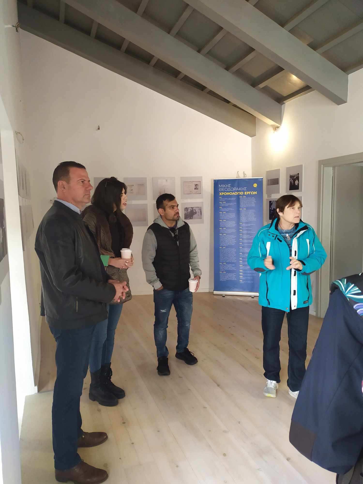 Ο Αντιδήμαρχος Χανίων αφού καλωσόρισε τους φοιτητές, έδωσε την σκυτάλη στην κ. Kaulich, η οποία πραγματοποίησε την ξενάγηση στην έκθεση «Μίκης Θεοδωράκης, 80 χρόνια» που περιλαμβάνει ντοκουμέντα από το Αρχείο Μίκη Θεοδωράκη και τη Μεγάλη Μουσική Βιβλιοθήκη της Ελλάδος «Λίλιαν Βουδούρη».