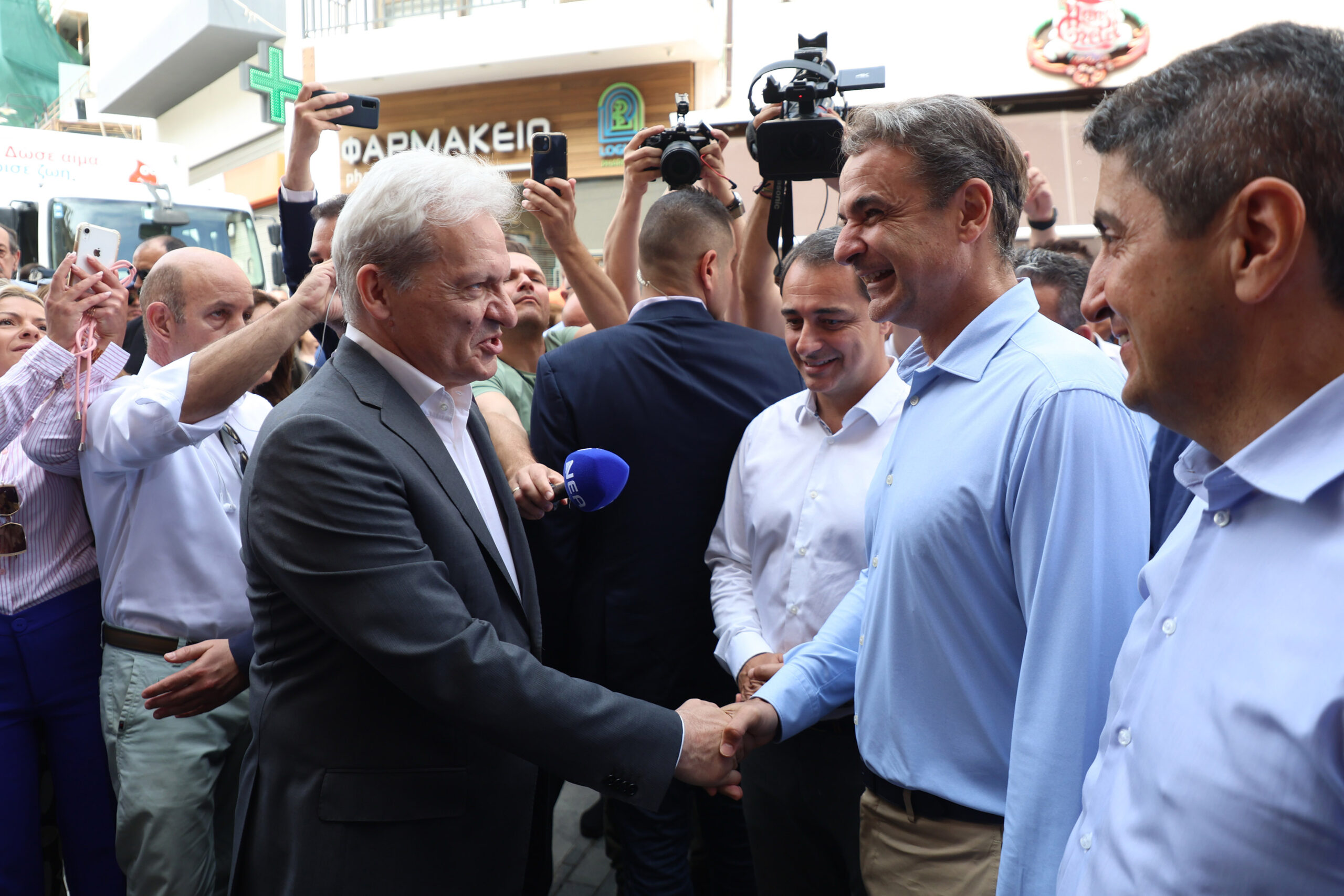 Τον Πρωθυπουργό Κυριάκο Μητσοτάκη συνόδευαν ο Υπουργός Αγροτικής Ανάπτυξης & Τροφίμων Λευτέρης Αυγενάκης, ο Υφυπουργός Ανάπτυξης Μάξιμος Σενετάκης, ο Βουλευτής Ηρακλείου Κωνσταντίνος Κεφαλογιάννης και στελέχη της ΝΔ.