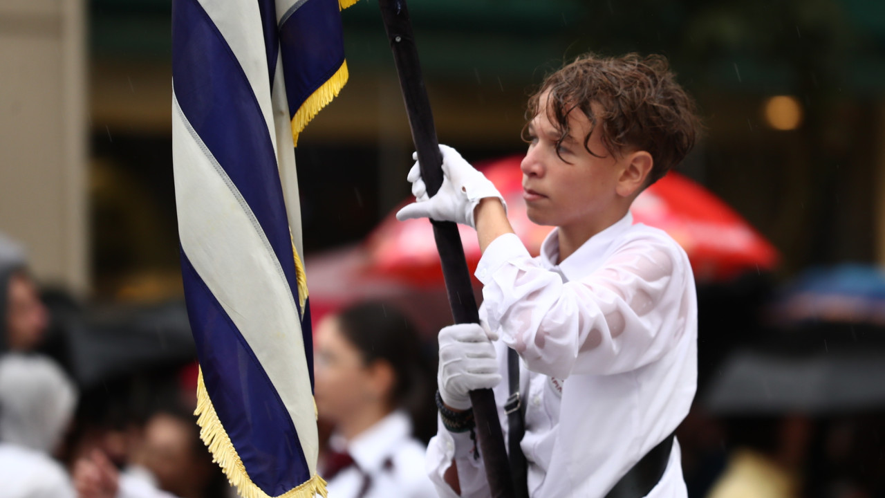 Υπό έντονη βροχόπτωση παρέλασαν σήμερα οι μικροί και μεγάλοι μαθητές στο κέντρο της Θεσσαλονίκης για την εθνική επέτειο της 28ης Οκτωβρίου.