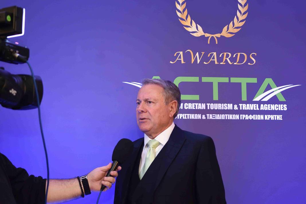 Στην καθιερωμένη Ομιλία του Προέδρου του Συνδέσμου κ Μιχάλη Βλατάκη είπε τα εξής: Δεν είμαι φίλος του πρωτοκόλλου αλλά πολύ καλός φίλος των παρισταμένων και αυτό είναι το πιο σημαντικό, οπότε δεν καλωσορίζω προσωπικά τον καθένα αλλά αρκούμαι στο απλό και ουσιαστικό. Καλησπέρα σε όλους σας . Εκ μέρους του ΔΣ σας καλωσορίζουμε στην σημερινή μας εκδήλωση βράβευσης των καλύτερων υπαλλήλων των Τουριστικών Γραφείων, μια εκδήλωση ,που πρώτοι στον κλάδο όλα αυτά τα χρόνια, έχουμε καθιερώσει για να επιβραβεύουμε την αριστεία. Ο Σύνδεσμος μας αποτελεί τον πιο δυναμικό εκπρόσωπο του Τουρισμού της Κρήτης και θεωρείται από τους σημαντικότερους στην χώρα ,ένας φορέας που είναι δίπλα στην κοινωνία, συμμετέχοντας και στηρίζοντας φιλανθρωπικές δράσεις ,οικογένειες και ιδρύματα που έχουν ανάγκη, που ενισχύει οικονομικά το Αεροδρόμιο όσο κανείς , υπηρεσίες και Δήμους για την καλύτερη εξυπηρέτηση των Τουριστών μας ,που συμμετέχει ,χορηγεί και διοργανώνει όλες τις επισκέψεις ΜΜΕ για την προώθηση της Κρήτης ,που κατασκεύασε και λειτούργησε το παρκινγκ δίπλα στο αεροδρόμιο ,για να έχουν δωρεάν παρκινγκ οι εργαζόμενοί στο αεροδρόμιο και να αναπνεύσει το αεροδρόμιο από την ασφυκτική συγκέντρωση των πούλμαν. Όσον αφορά την παρελθούσα σαιζόν, είχαμε μια ακόμη αριθμητικά καλή σαιζόν, με περίπου 6% αύξηση , που μάλλον αποτυπώνεται και στα γενικά έσοδα, όσο για τα κέρδη θα πρέπει να αναμένουμε τους ισολογισμούς ,τον καθρέπτη της πραγματικότητας. Για την επόμενη χρονιά, βλέπουμε μια αύξηση στις προκρατήσεις, την οποία δεχόμαστε ευχάριστα ,χωρίς να θριαμβολογούμε ,διότι απλώς δείχνει την θετική τάση επιλογής της ΚΡΗΤΗΣ ως προορισμό, ελπίζουμε να συνεχιστεί αυτό. Λαμβάνουμε υπόψη μας τις αναταραχές που συνεχίζουν να συμβαίνουν, στην γειτονια μας , τα τρομερά συμβάντα της κλιματικής αλλαγής και συνεχίζουμε να προσπαθούμε για το καλύτερο. Ευχόμαστε για μια ακόμη φορά να είμαστε προσγειωμένοι, ενωμένοι και προσηλωμένοι στον στόχο μας και με πολύ δουλειά θα τα καταφέρουμε για μια ακόμη φορα. Καλή Δύναμη σε όλους μας.