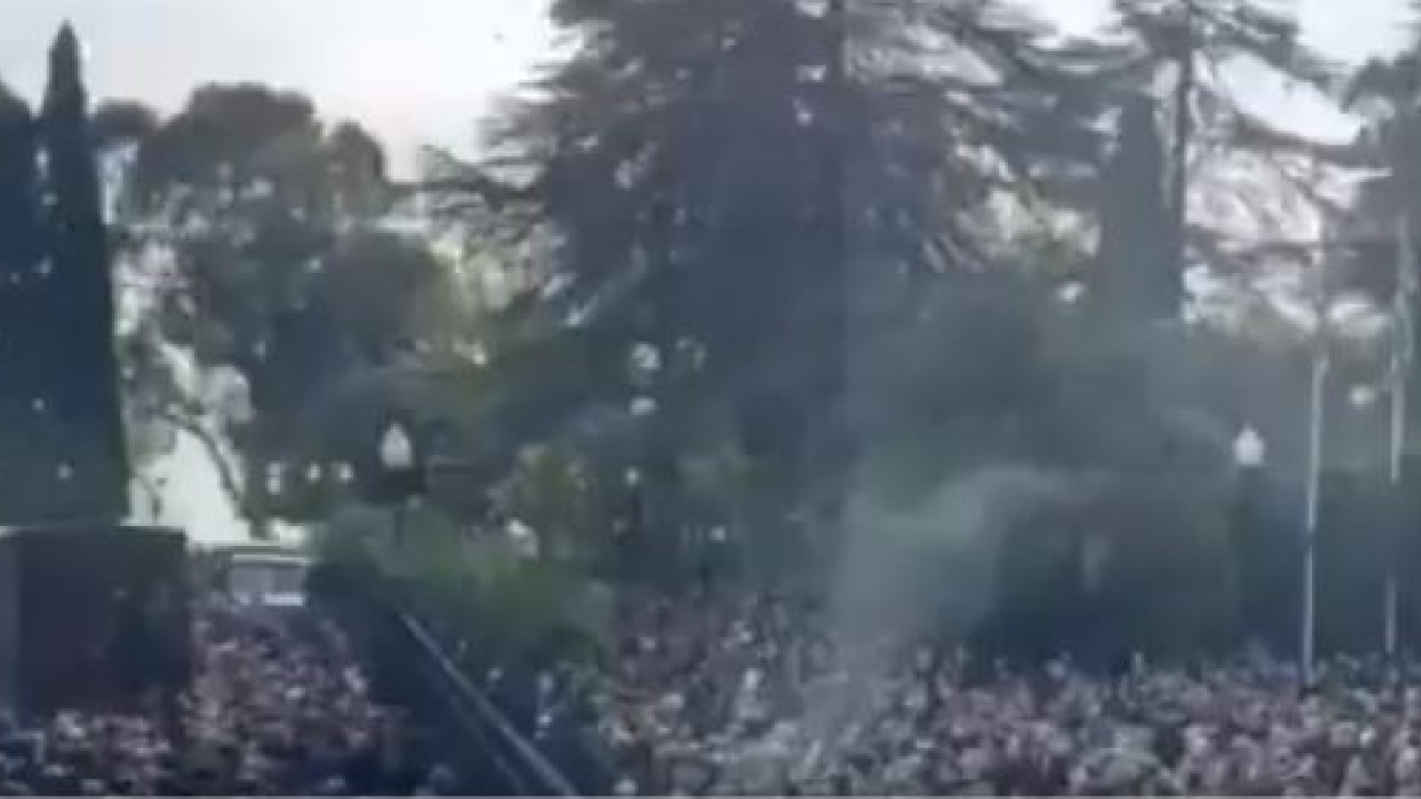 Οι διαδηλωτές διέλυσαν τμήμα της περίφραξης γύρω από το κτίριο, με τη βοήθεια φορτηγού, και πέταξαν αυγά και πλαστικά μπουκάλια στους αστυνομικούς, σύμφωνα με την ίδια πηγή. Οι δυνάμεις της τάξης ανταπάντησαν με ρίψη δακρυγόνων, σύμφωνα με βίντεο που αναρτήθηκε στα τοπικά μέσα κοινωνικής δικτύωσης.