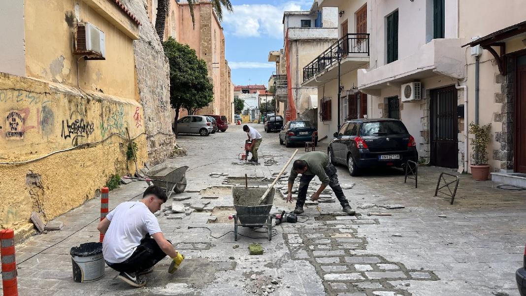 Με εντατικούς ρυθμούς συνεχίζονται οι εργασίες συντήρησης και αποκατάστασης του πλακόστρωτου με την επίβλεψη της Τεχνικής Υπηρεσίας του Δήμου Χανίων. Οι εργασίες εκτελούνται τον τελευταίο μήνα στην παλιά πόλη, στην παραλιακή ζώνη του Κουμ Καπί και στο ενετικό λιμάνι των Χανίων.