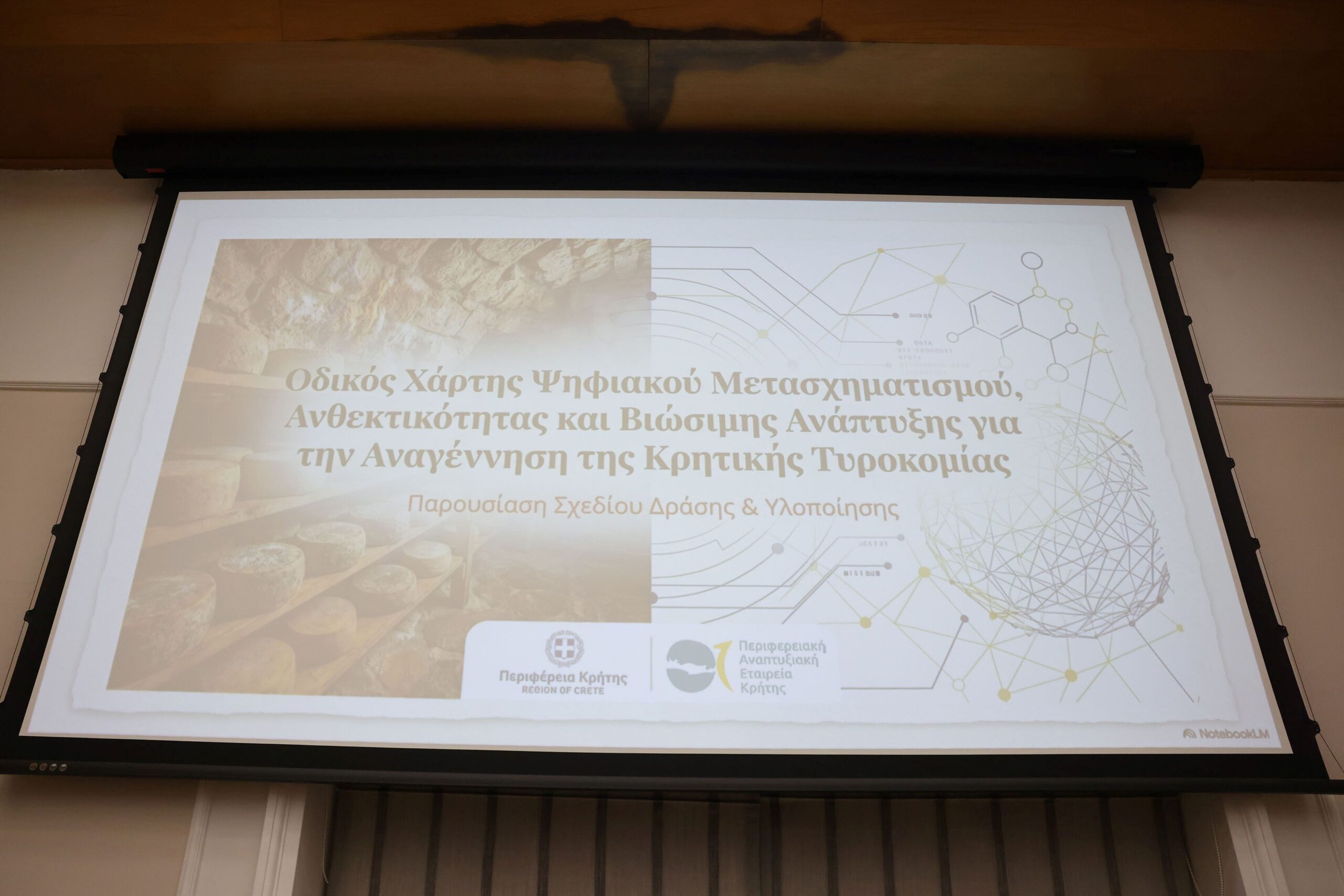 Η Περιφέρεια Κρήτης παρουσίασε σήμερα το έργο «Οδικός Χάρτης Ψηφιακού Μετασχηματισμού, Ανθεκτικότητας και Βιώσιμης Ανάπτυξης για την Αναγέννηση της Κρητικής Τυροκομίας».