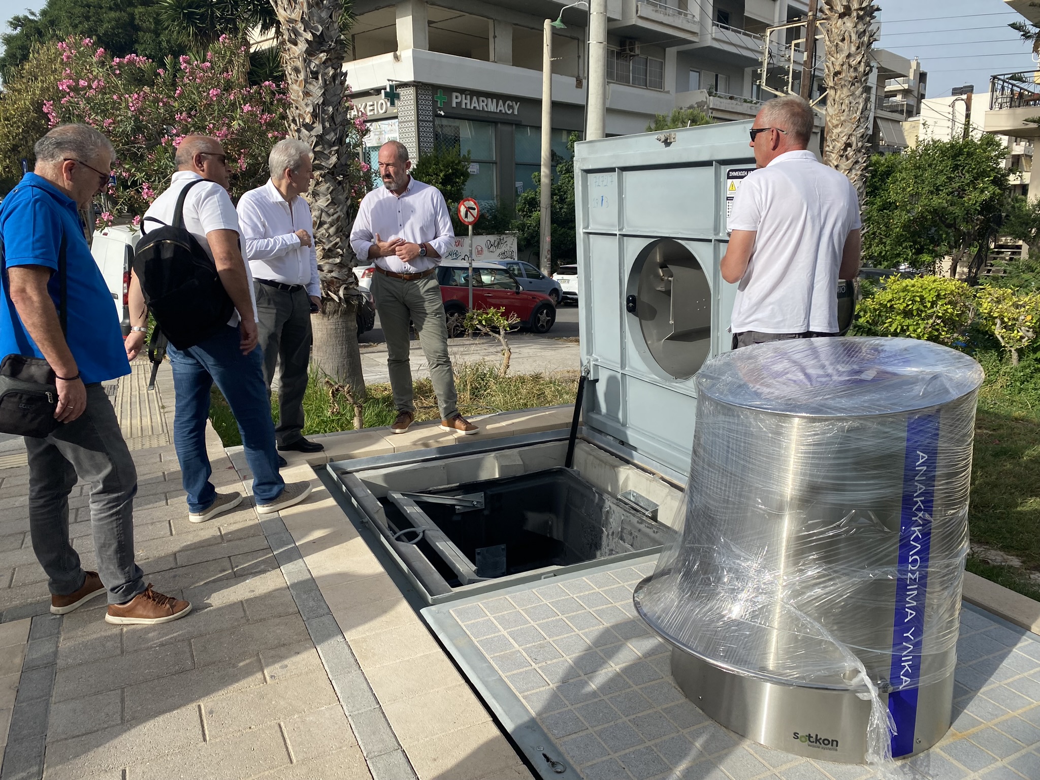 Ο Δήμαρχος Ηρακλείου ενημερώθηκε για την πορεία υλοποίησης του έργου η οποία εξελίσσεται με γρήγορους ρυθμούς. Με την επιτυχή ολοκλήρωση της πρώτης τμηματικής παράδοσης των υπόγειων κάδων απορριμμάτων, έχουν ήδη τοποθετηθεί σε 20 σημεία, στη Λ. Δημοκρατίας, στο παρκάκι της Εθνικής Αντιστάσεως, στην οδό Αρτέμιδος (Πάρκο Μικράς Ασίας), πάνω από το πάρκο της Μικράς Ασίας, στην Λ. Κνωσσού, καθώς και στις συμβολές των οδών Μ. Ηλιάδη – Παστρικάκη και Βασιλάκη – Ν. Καμπιτάκη. Επίσης, σε άλλα σημεία της πόλης προχωρούν οι αναγκαίες εργασίες πριν την τελική τοποθέτηση των υπόλοιπων 80 υπόγειων κάδων.