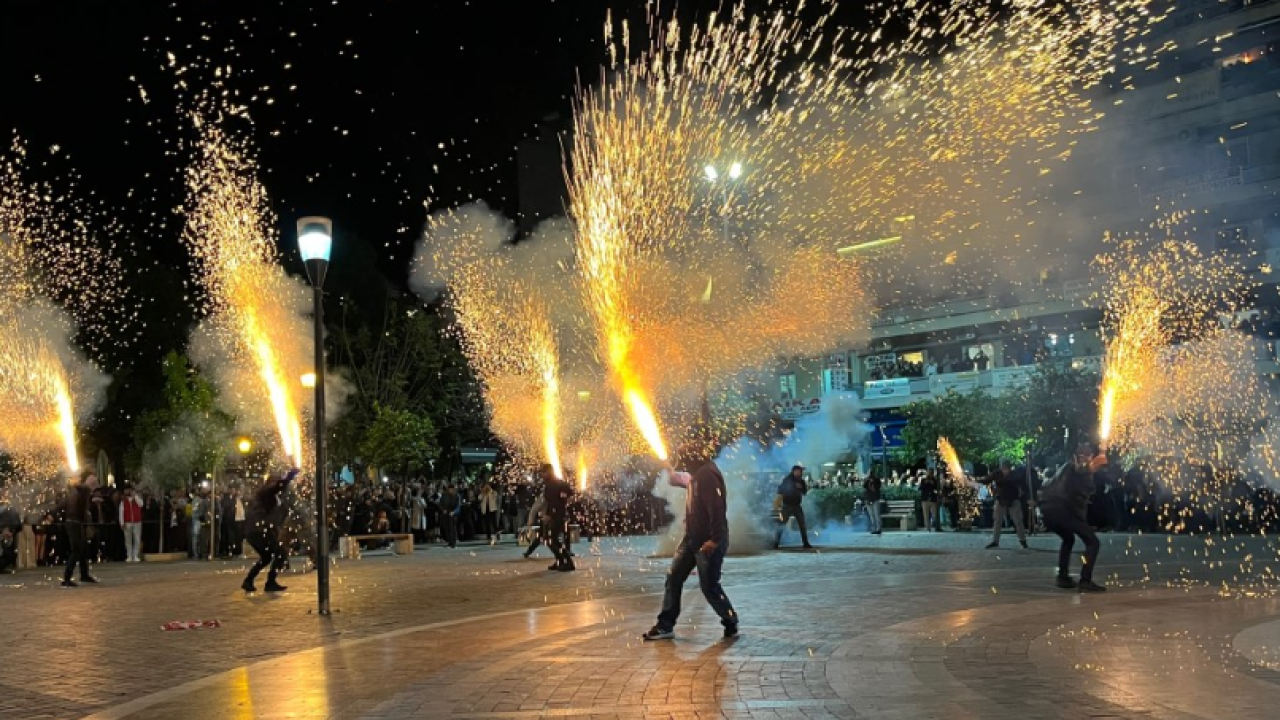 Πλήθος κόσμου συγκεντρώθηκε στην κεντρική πλατεία για να παρακολουθήσει το υπερθέαμα και την αναβίωση του θρησκευτικού εθίμου.