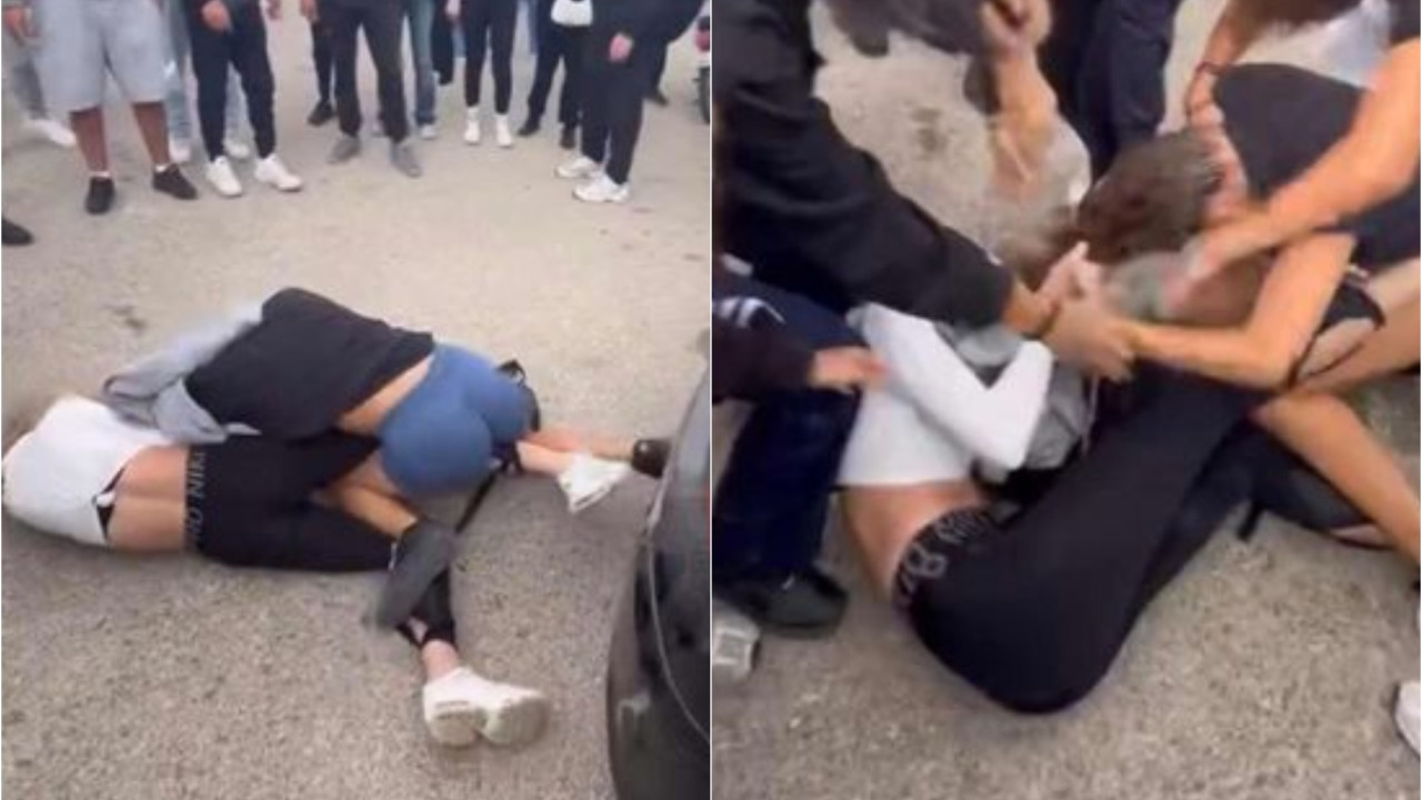 Το σκηνικό παρακολουθούσαν πολλοί μαθητές, που διακρίνεται πως γελούν. Όταν οι ανήλικες βρέθηκαν στο πάτωμα, τότε παρενέβησαν κάποια κορίτσια για να τις χωρίσουν.