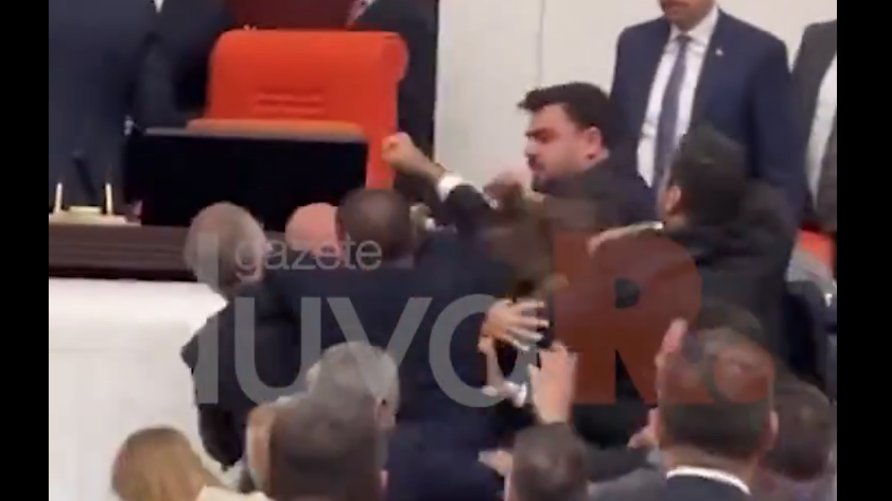 Άγριες σκηνές βίας έλαβαν χώρα για μία ακόμη φορά στην τουρκική Βουλή, κατά την ομιλία του βουλευτή Ahmet Şık.