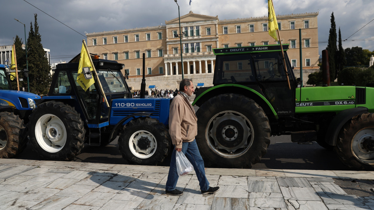 Παραγωγοί από όλα τα μέρης της χώρας παρατάχθηκαν με τα τρακτέρ τους έξω από τη Βουλή, προετοιμασμένοι για να περάσουν εκεί τη νύχτα.