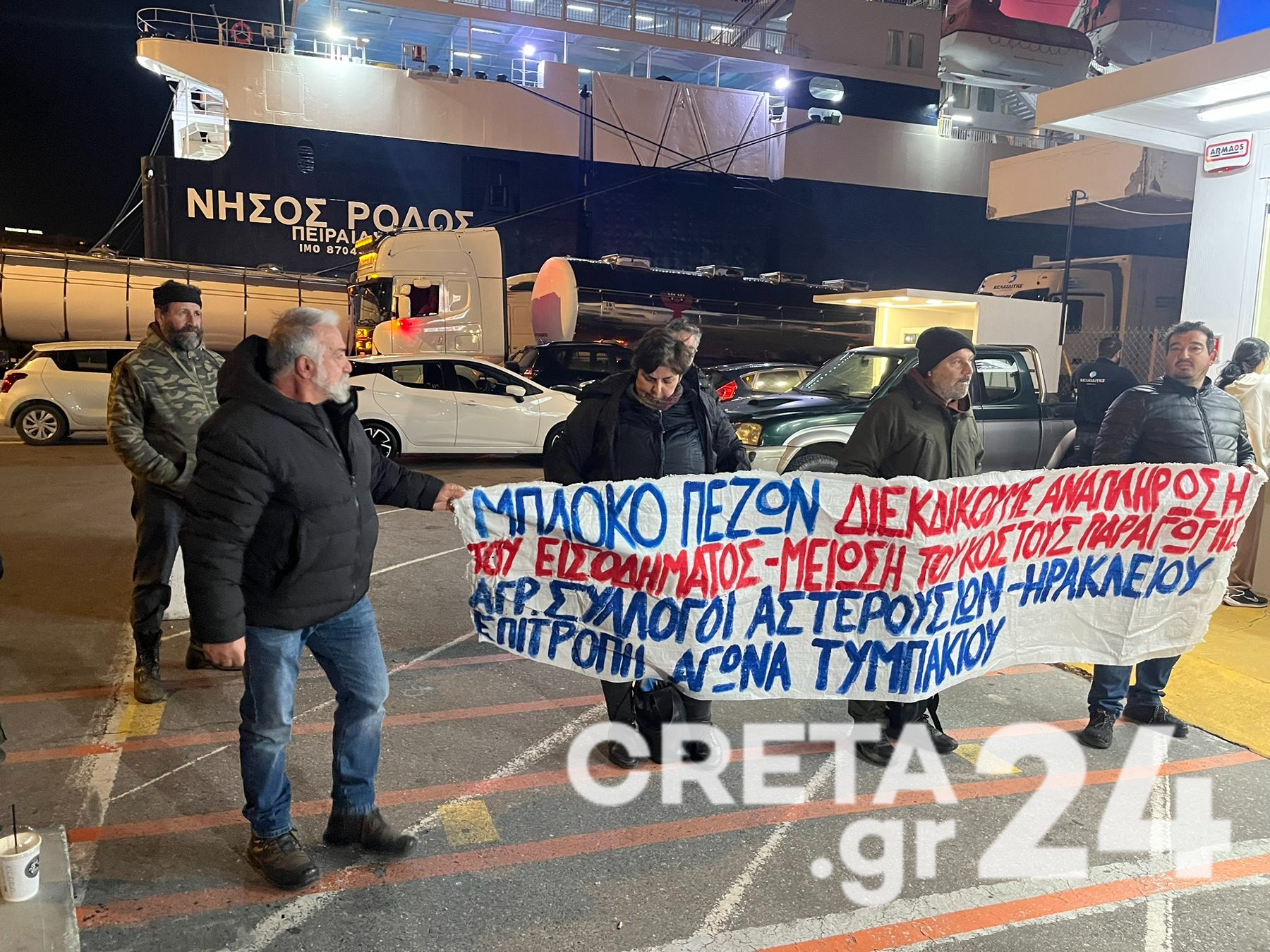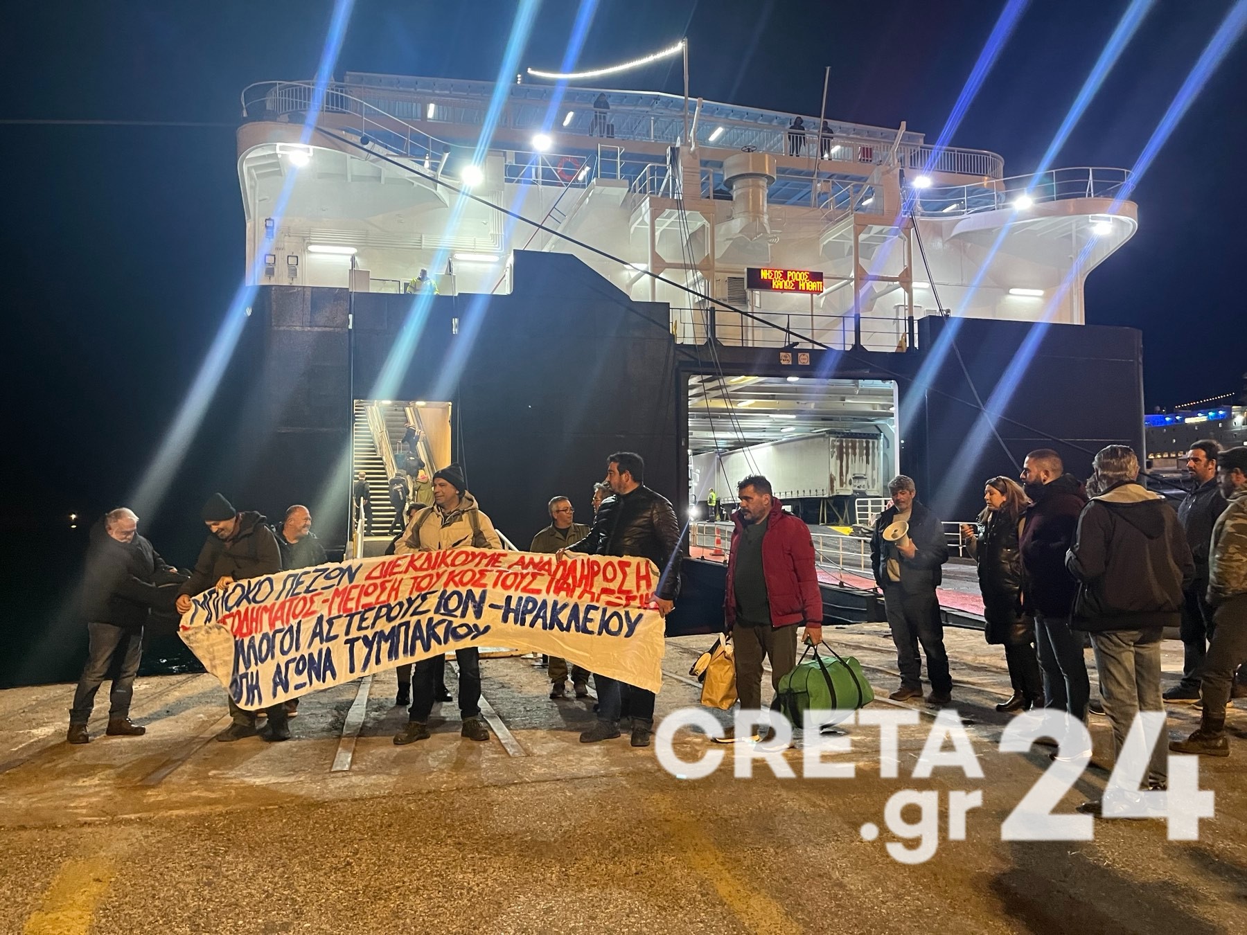 Στα πλοία της γραμμής επιβιβάστηκαν οι αγρότες από το Ηράκλειο και τα Χανιά προκειμένου να συμμετάσχουν στο πανελλαδικό συλλαλητήριο της Τρίτης στην Αθήνα.