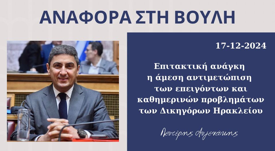 Το άρθρο “Αναφορά Αυγενάκη στη Βουλή με αίτημα την αντιμετώπιση επειγόντων και καθημερινών προβλημάτων των δικηγόρων Ηρακλείου“, δημοσιεύθηκε για πρώτη φορά στο CRETA24.
