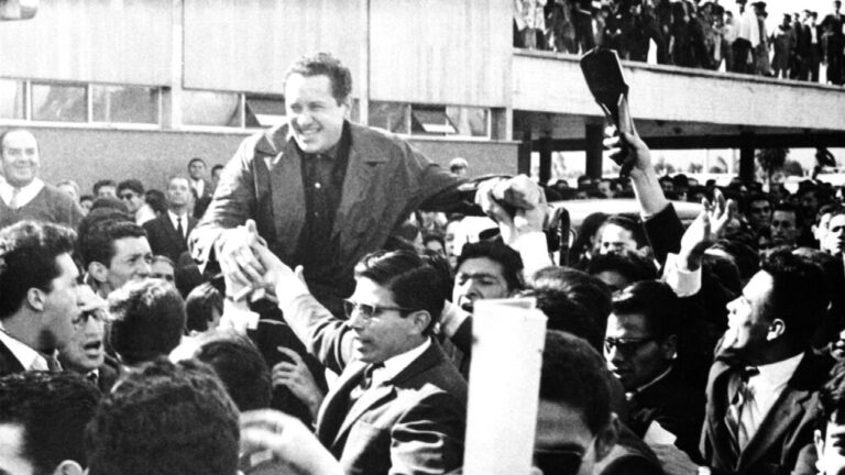 Κεντρική φωτογραφία: Ο πρώην Κολομβιανός Ρωμαιοκαθολικός ιερέας Καμίλο Τόρες, με πολιτική ενδυμασία, μεταφέρεται στους ώμους των οπαδών του λίγες μέρες αφότου αποχώρησε από την ιεροσύνη, Ιούνιος 1965.