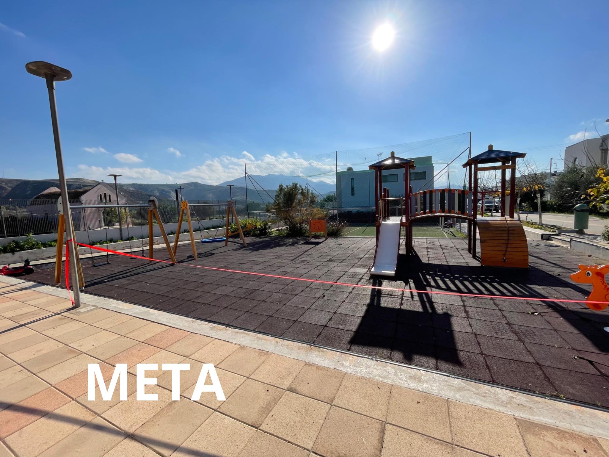 Στην παιδική χαρά εγκαταστάθηκαν, μία κούνια, μία τραμπάλα, ένα πάνελ δραστηριοτήτων, ένα παιγνίδι ελατηρίου, δύο ξύλινα παγκάκια και ένας κάδος απορριμμάτων. Την εγκατάσταση των οργάνων αλλά και τον καθαρισμό και τη συντήρησή τους ανέλαβε δωρεάν η εταιρία «JOYMACHINE» του κ. Κωνσταντίνου Πολυμίλη.