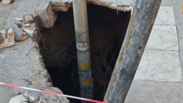 Η τρύπα έχει πέντε μέτρα εμβαδόν kai σημαντικό βάθος, ενώ την ώρα που άνοιξε «ρούφηξε» και μια κολώνα φωτισμού.