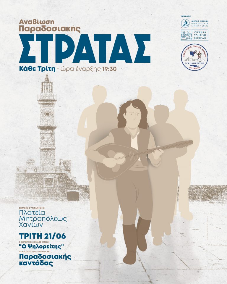 Η αναβίωση της «Παραδοσιακής Στράτας», το παραδοσιακό μουσικοχορευτικό δρώμενο, στους δρόμους των Χανίων, ανακοινώθηκε από τον Δήμο Χανίων, σε Συνέντευξη Τύπου που πραγματοποιήθηκε στον εκθεσιακό χώρο του Κέντρου Αρχιτεκτονικής της Μεσογείου.