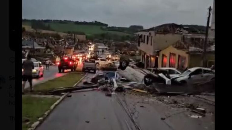 ❗️🌪🇧🇷 – A powerful tornado ravaged the small city of Rio Bonito do Iguaçu in Paraná, Brazil, late on Friday, November 7, 2025, unleashing winds exceeding 62 mph that tore roofs from homes, toppled trees and power poles, and collapsed masonry structures, leaving streets blocked… pic.twitter.com/EycrLV8vA8