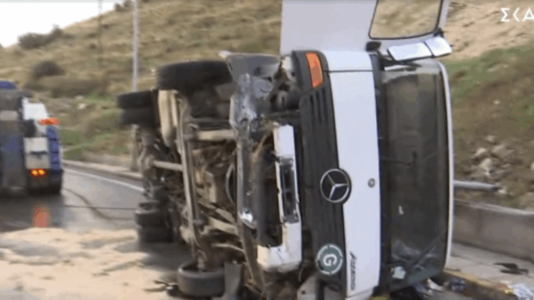 Στο φορτηγό που ανετράπη βρισκόταν και η μητέρα του οδηγού, η οποία σκοτώθηκε, σύμφωνα με το ρεπορτάζ του ΣΚΑΪ.