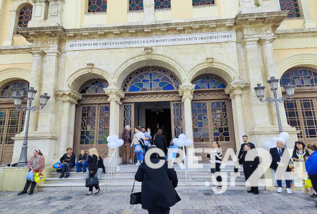 40 ημέρες μετά, κανείς δεν ξεχνάει το τρίχρονο αγόρι… Ο Ιερός Μητροπολιτικός Ναός του Αγίου Μηνά γέμισε από λευκά μπαλόνια, κεράσματα στη μνήμη του Άγγελου και δάκρυα αβάσταχτου πόνου και συγκίνησης, στη διάρκεια του 40ήμερου μνημόσυνου που τέλεσε ομάδα πολιτών στο Ηράκλειο.