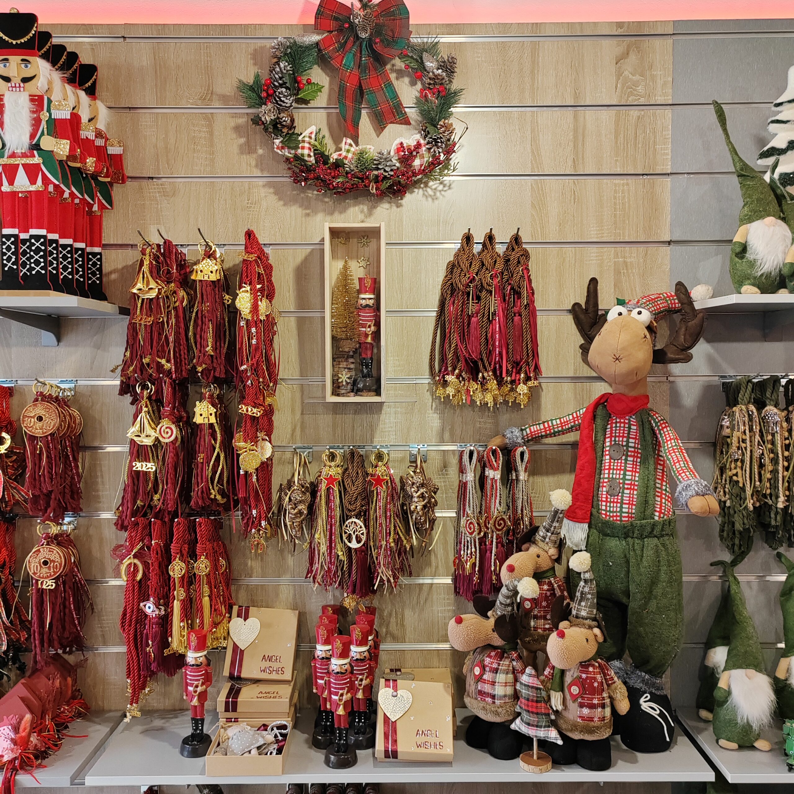 Μεγάλη ποικιλία σχεδίων και χρωμάτων σε γούρια, στολίδια και στεφάνια, χειροποίητες συνθέσεις για το στόλισμα του σπιτιού και του γιορτινού τραπεζιού, σπιτικά γλυκά και κεράσματα, ατζέντες και ημερολόγια και άλλα πολλά όμορφα χριστουγεννιάτικα δώρα, όλα φτιαγμένα με αγάπη από τις εθελόντριες του «Ορίζοντα» και προσφορά τοπικών επιχειρήσεων, σχολείων και ιδιωτών.
