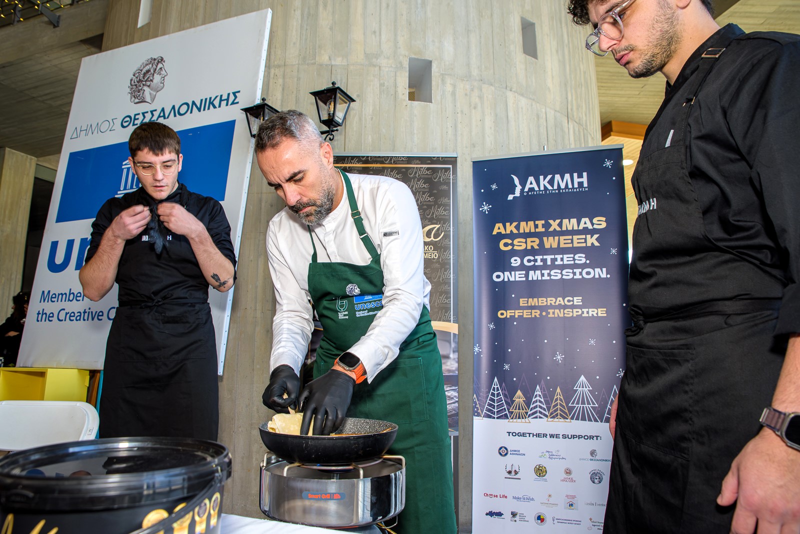 - Στη Θεσσαλονίκη, οι μελλοντικοί chefs της ΑΚΜΗΣ, μαζί με τους καθηγητές τους, προσφέρουν ζεστασιά και γεύση μέσα από ένα live cooking event στο Δημαρχείο.