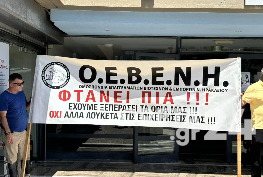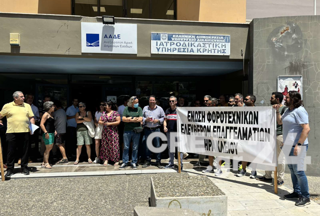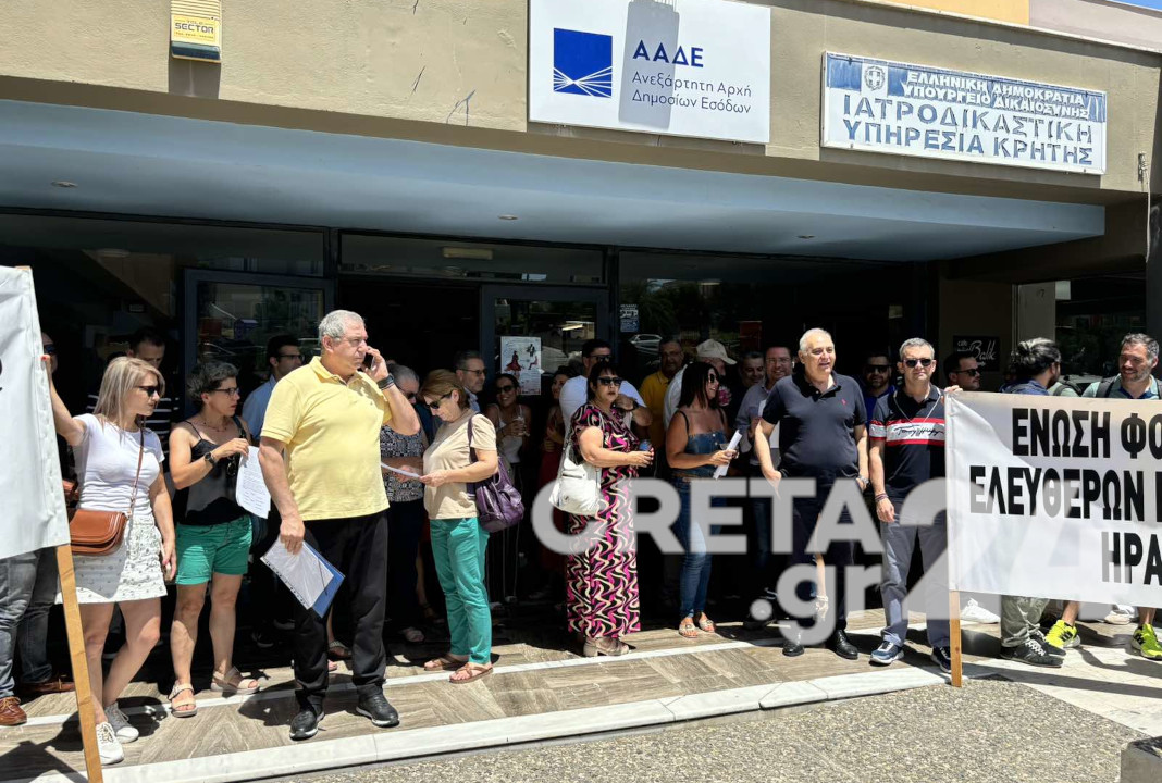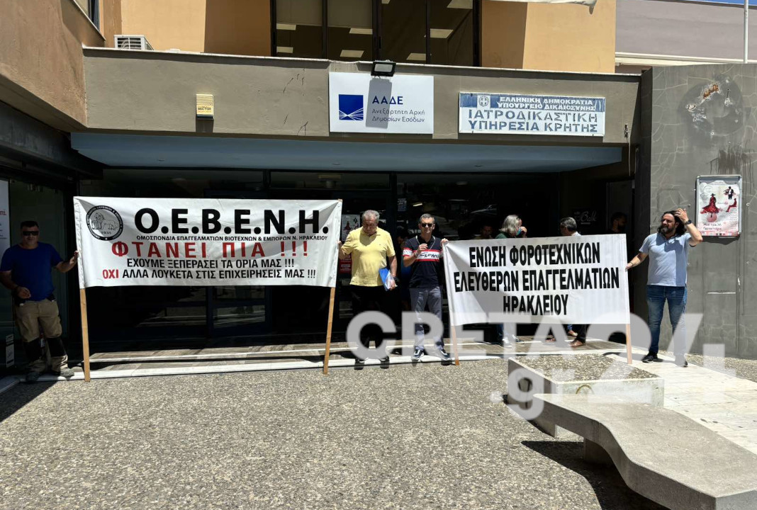 Σε μια δυναμική κινητοποίηση προχώρησαν το πρωί της Δευτέρας, έξω από την ΔΟΥ Ηρακλείου, βιοτέχνες και λογιστές – φοροτεχνικοί.
