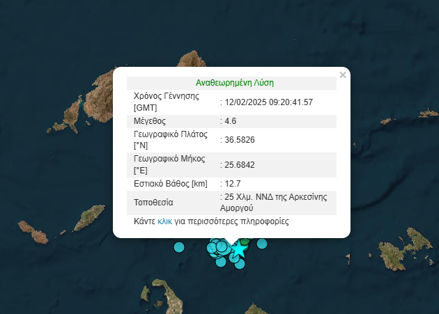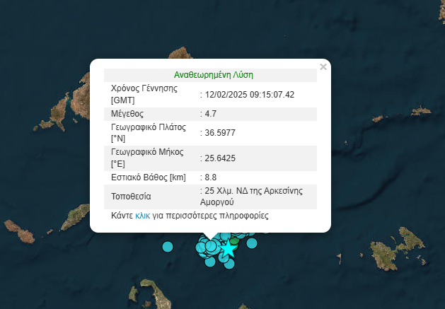 Πιο συγκεκριμένα στις 11:15 σεισμός μεγέθους 4,7 Ρίχτερ σημειώθηκε 25 Χλμ. νοτιοδυτικά της Αρκεσίνης Αμοργού.