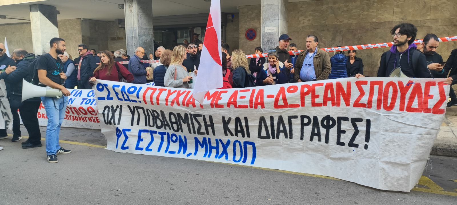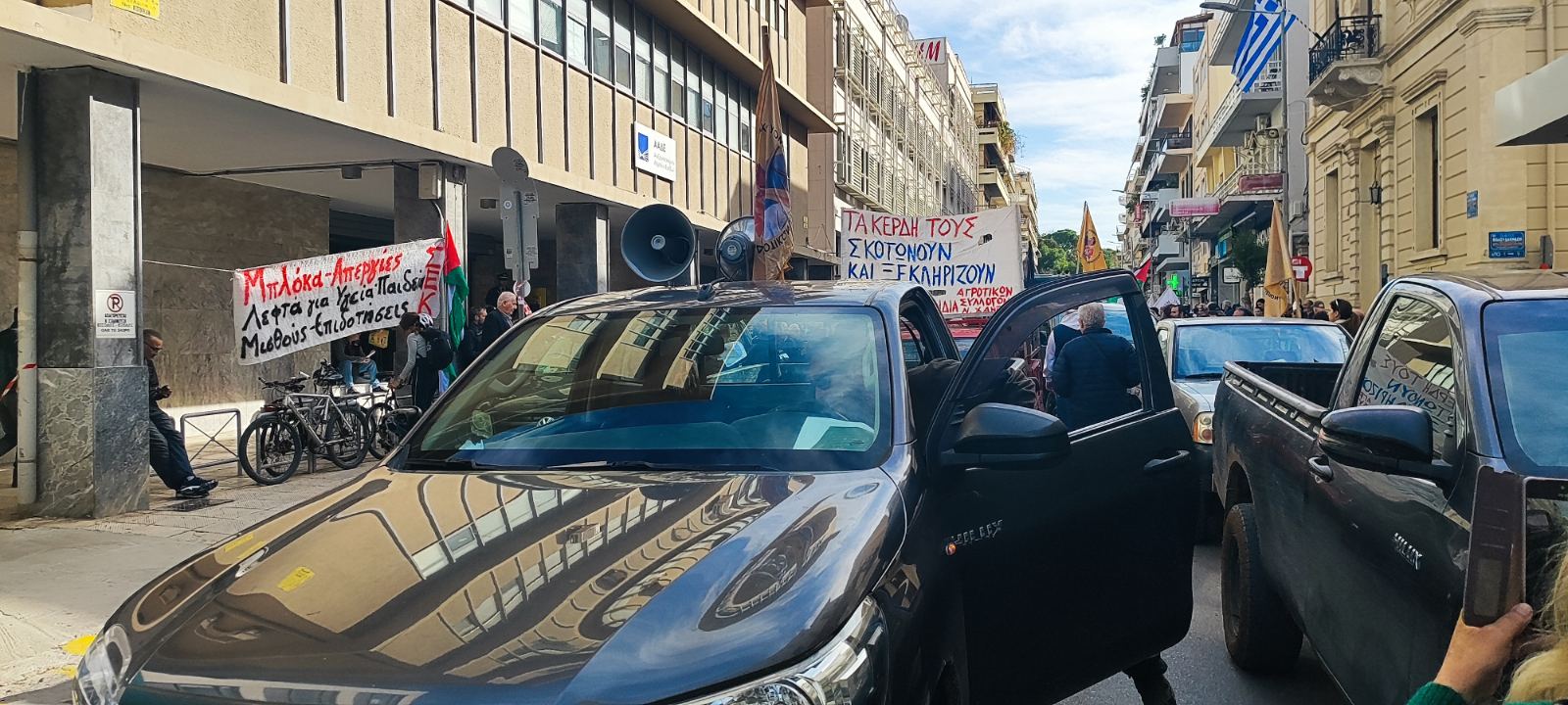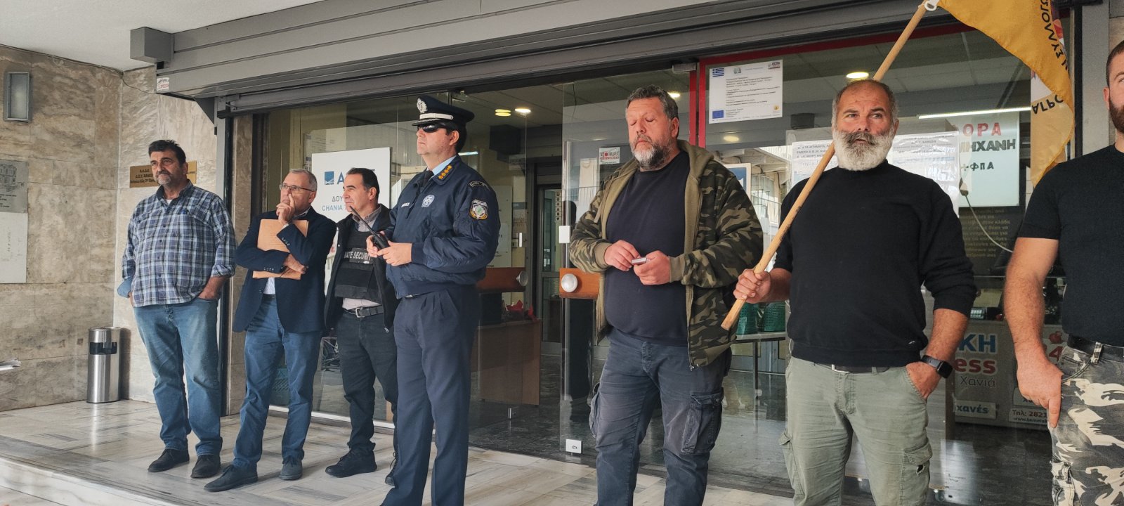 Η Ομοσπονδία Αγροτικών Συλλόγων Νομού Χανίων, μελισσοκόμοι, αγρότες αλλά και φοιτητικοί σύλλογοι συμμετέχουν στον αποκλεισμό της Εφορίας Χανίων αυτή την ώρα.
