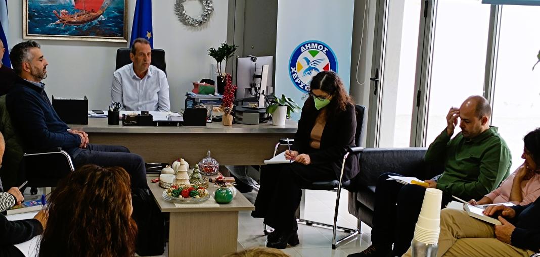 Απολογισμός δράσης και πεπραγμένων για το 2024 πραγματοποιήθηκε στο γραφείο του Δημάρχου Χερσονήσου κ. Ζαχαρία Δοξαστάκη στις Γούρνες, παρουσία των Αντιδημάρχων του Δήμου, των Εντεταλμένων Συμβούλων και των προϊσταμένων Διευθύνσεων και Τμημάτων του Δήμου.