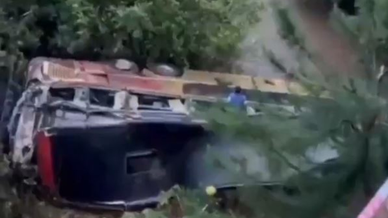 Ως αποτέλεσμα της σύγκρουσης, το λεωφορείο πήρε κλίση και έπεσε από τη γέφυρα στην κοίτη ενός ποταμού, σε βάθος αρκετών μέτρων.