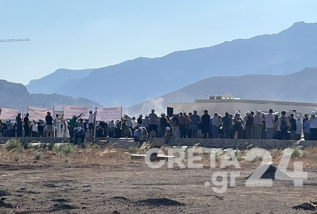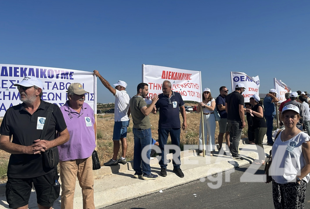 Πλήθος κόσμου έχει συγκεντρωθεί στον β’ Κόμβο της εισόδου του νέου αεροδρομίου Καστελλίου, ζητώντας να προχωρήσουν άμεσα οι διαδικασίες για την ανασυγκρότηση της περιοχής.