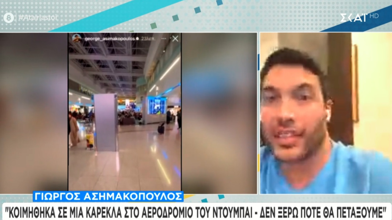 «Είμαστε ακόμα στο αεροδρόμιο, έχουμε φάει απίστευτη ταλαιπωρία» τόνισε στον ΣΚΑΪ και τους Αταίριαστους ο επιχειρηματίας, ο οποίος ήταν παίκτης στο Survivor.