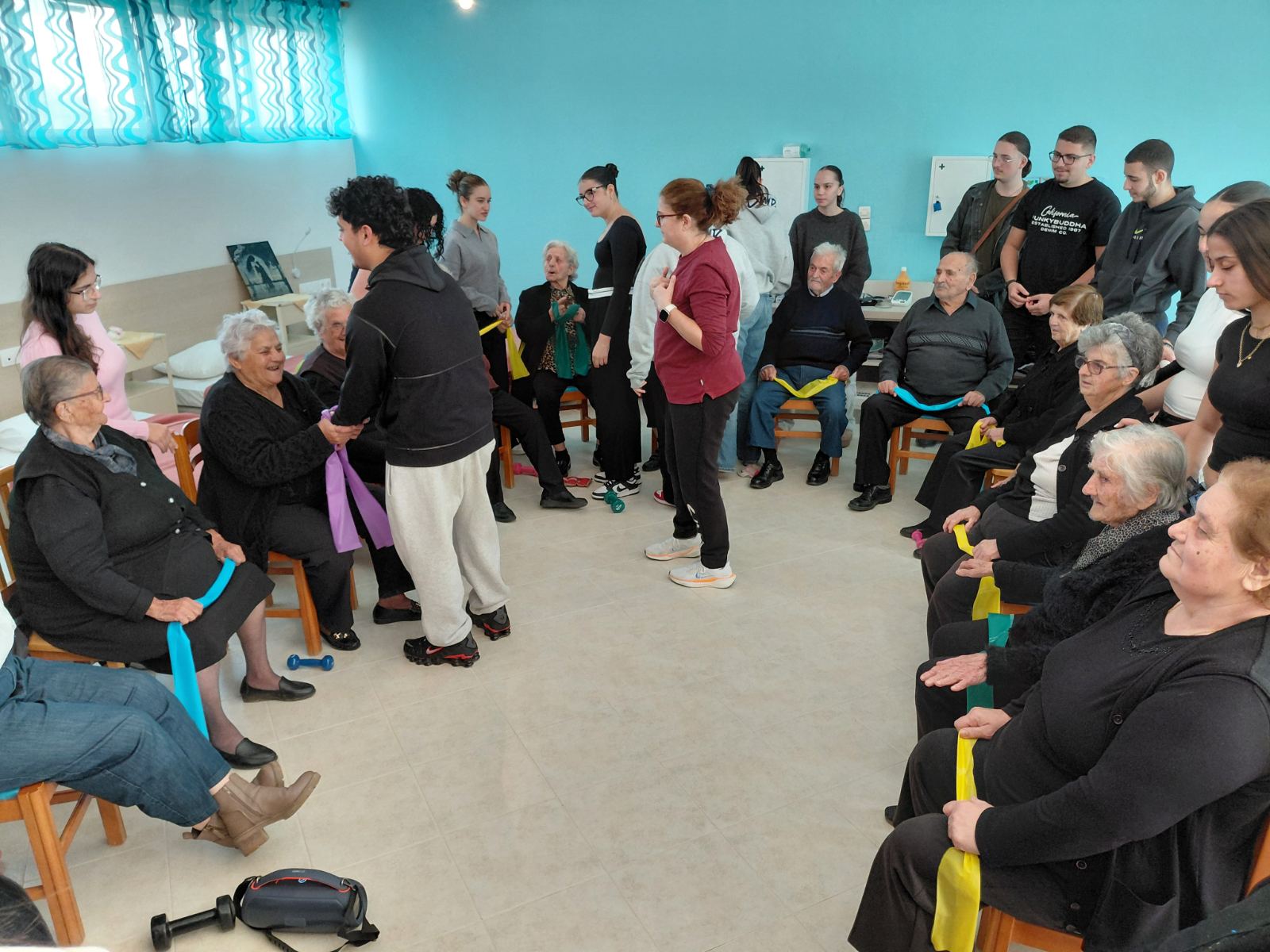 Οι φοιτητές, υπό την καθοδήγηση των καθηγητριών τους, εφάρμοσαν ειδικές ασκήσεις φυσικοθεραπείας στους ωφελούμενους, στο πλαίσιο προγράμματος ενδυνάμωσης και πρόληψης πτώσεων. Η εν λόγω δράση συνέβαλε ουσιαστικά στη βελτίωση της κινητικότητας και της καθημερινής λειτουργικότητας των συμμετεχόντων, αναδεικνύοντας για ακόμη μία φορά τη σημασία δράσεων που ενισχύουν την υγεία, την πρόληψη και την ποιότητα ζωής των ηλικιωμένων συμπολιτών μας.