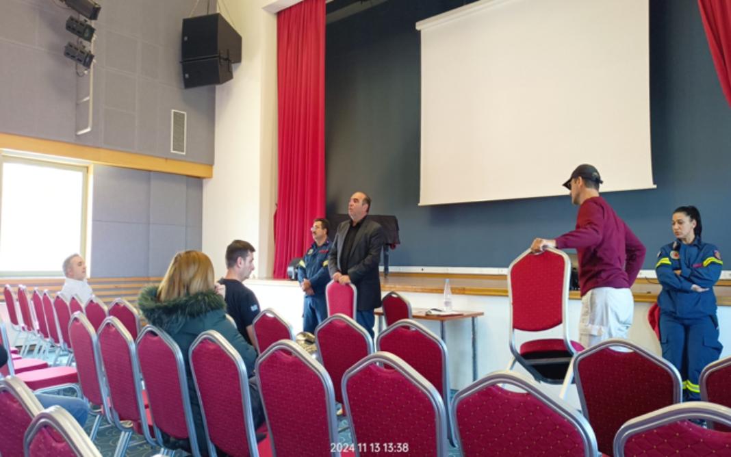 Μετά την ολοκλήρωση της άσκησης, όλοι οι συμμετέχοντες συγκεντρώθηκαν στην αίθουσα εκδηλώσεων του Δημαρχείου, όπου εξηγήθηκε η σημασία του σχεδίου εκκένωσης σε περίπτωση σεισμού και τονίστηκε ότι παρόμοια σχέδια, έστω και σε βασικό επίπεδο, θα πρέπει να υπάρχουν και στις κατοικίες μας.