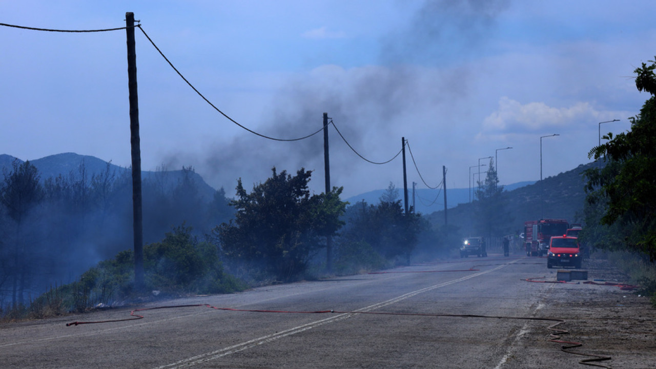 Σύμφωνα με την πυροσβεστική, στην περιοχή υπάρχουν διάσπαρτα σπίτια και αποθήκες που προς ώρας δεν απειλούνται