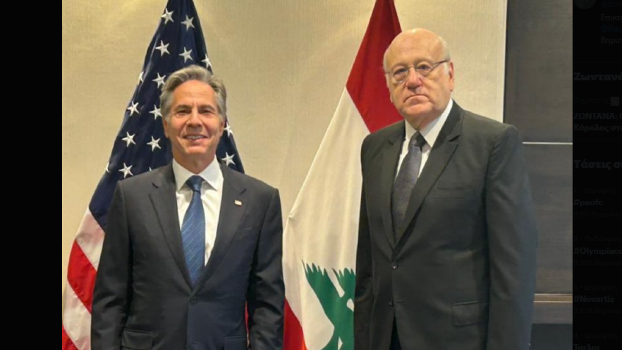 Ο επικεφαλής της αμερικανικής διπλωματίας Άντονι Μπλίνκεν συναντήθηκε χθες στο Λονδίνο με τον πρωθυπουργό του Λιβάνου Νατζίμπ Μικάτι και αμέσως μετά τράβηξαν φωτογραφία.