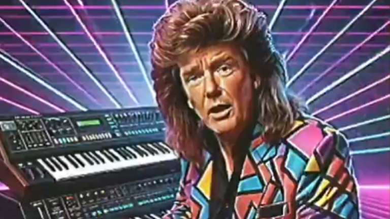 Το ΑΙ τραγούδι, με τον πρόεδρο των ΗΠΑ με κόμη της δεκαετίας του ’80, σε ρόλο frontman αναδημοσίευσε μάλιστα η ιρανική πρεσβεία στη Σαουδική Αραβία. To «τραγούδι» είναι βέβαια διασκευή του διάσημου Voyage Voyage, τραγούδι της Γαλλίδας τραγουδίστριας Desireless το 1989.