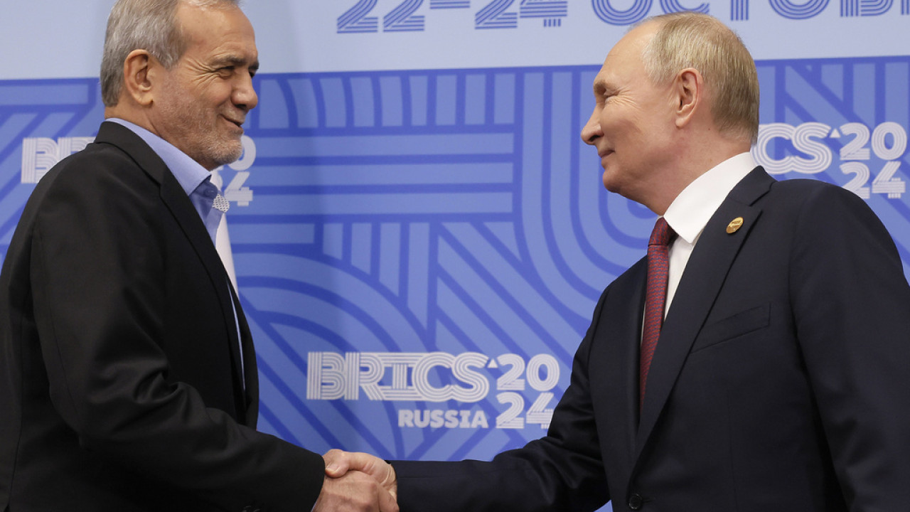 Ο Ρώσος πρόεδρος Βλαντίμιρ Πούτιν εξέφρασε σήμερα στον Ιρανό ομόλογό του Μασούντ Πεζεσκιάν τη βούλησή του να «ενισχυθούν» οι σχέσεις με την Τεχεράνη, η οποία κατηγορείται από τους Δυτικούς ότι προμηθεύει στον ρωσικό στρατό μη επανδρωμένα αεροσκάφη με εκρηκτικά για την επίθεσή του στην Ουκρανία.