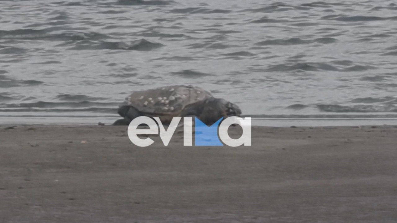 Με το στόμα ανοιχτό έμειναν όσοι αντίκρισαν το πρωί μία τεράστια χελώνα καρέτα – καρέτα, την οποία ξέβρασε η θάλασσα σε παραλία της Εύβοιας