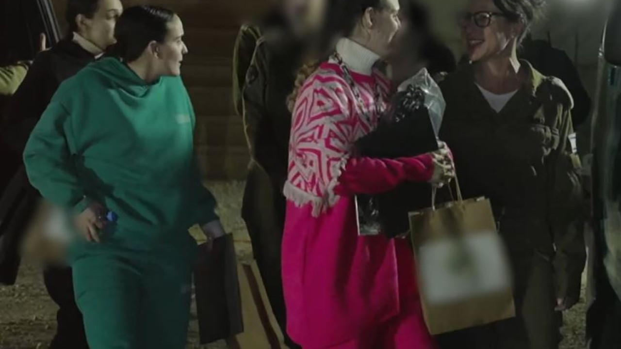 Hamas releases a propaganda video showing the release of hostages Romi Gonen, Emily Damari, and Doron Steinbrecher from captivity in the Gaza Strip earlier today.