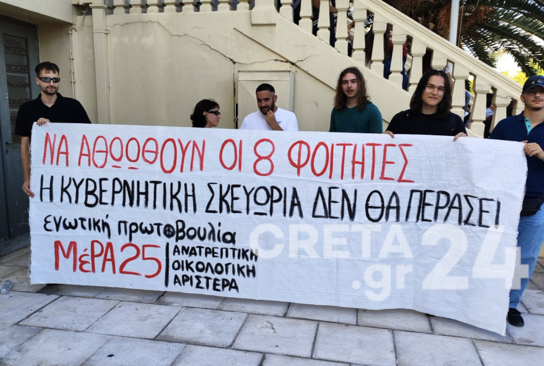 Αναβλήθηκε η δίκη των 8 φοιτητών και φοιτητριών του Πολυτεχνείου Κρήτης, η οποία είχε οριστεί να πραγματοποιηθεί σήμερα στο Μονομελές Πλημμελειοδικείο Χανίων.