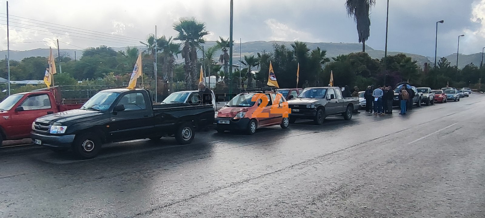 Οι αγρότες ξεκίνησαν μηχανοκίνητη πορεία από τον κόμβο των Μουρνιών, καταλήγοντας στις εγκαταστάσεις της αντιπεριφέρειας Χανίων, όπου πραγματοποιήσαν παράσταση διαμαρτυρίας.