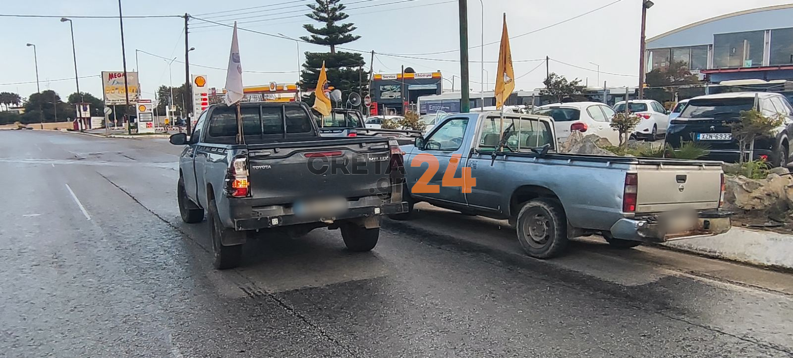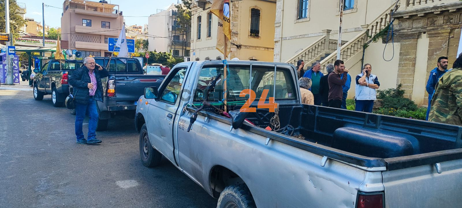 Οι αγρότες ξεκίνησαν μηχανοκίνητη πορεία από τον κόμβο των Μουρνιών, καταλήγοντας στις εγκαταστάσεις της αντιπεριφέρειας Χανίων, όπου πραγματοποιήσαν παράσταση διαμαρτυρίας.