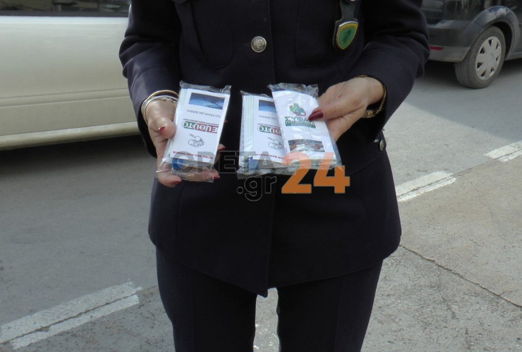 Στο πλαίσιο δράσης ευαισθητοποίησης ενόψει των γιορτών, η Τροχαία μοίρασε ενημερωτικό υλικό στους οδηγούς, στο κέντρο της πόλης, αλκοολόμετρα μίας χρήσης αλλά και κράνη στους ελάχιστους οδηγούς δίκυκλων που βρέθηκαν να οδηγούν χωρίς αυτά.