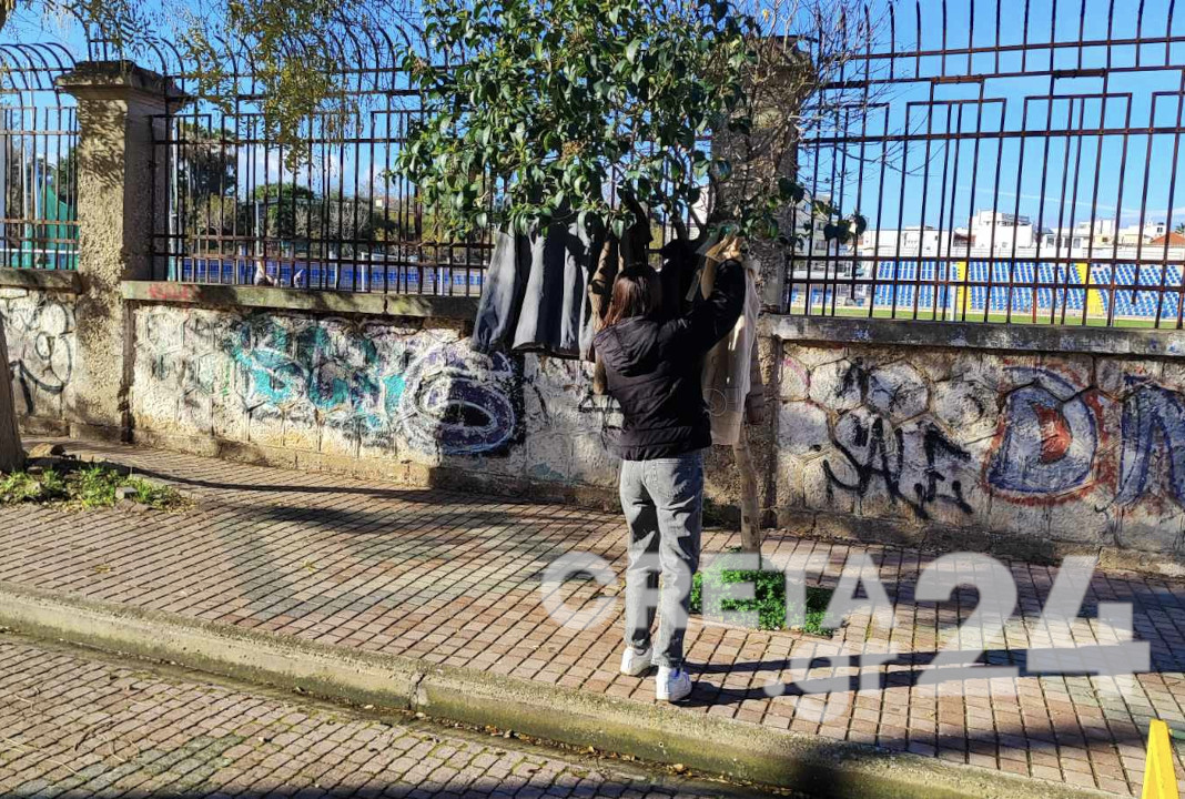 Τα ζεστά ρούχα που άφησαν οι μαθητές πάνω στα δέντρα θα συγκεντρωθούν και θα δοθούν σε κοινωνικές δομές της πόλης.