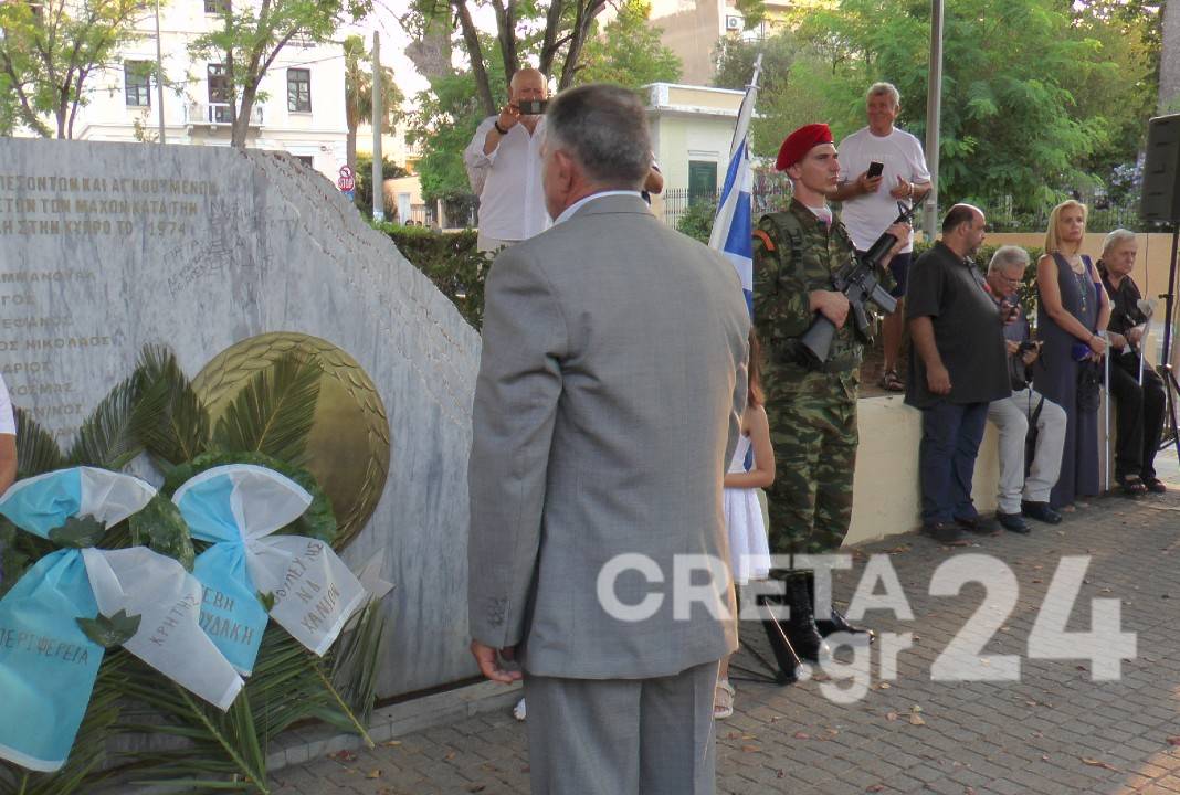 Εκδήλωση μνήμης και τιμής για τους πεσόντες κατά την Τουρκική Εισβολή στην Κύπρο το 1974 πραγματοποιήθηκε το απόγευμα του Σαββάτου στο Μνημείο Πεσόντων Κρητών στην Κύπρο & τη Λέσχη Αξιωματικών Φρουράς Χανίων.