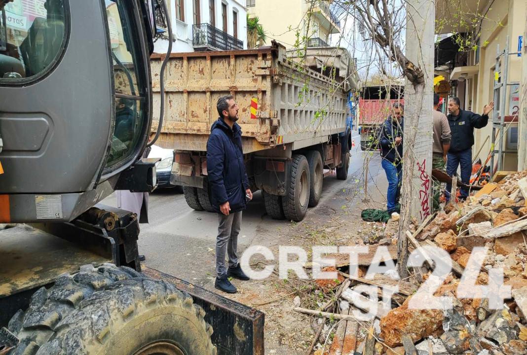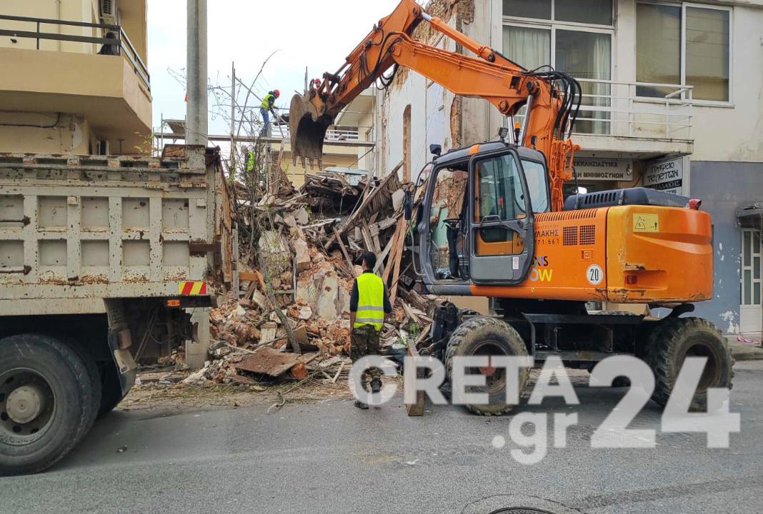 Στην κατεδάφιση ετοιμόρροπου και επικίνδυνου κτιρίου στην οδό Ελευθερίου Βενιζέλου στα Χανιά, λίγο πριν τη διασταύρωση με την Ηρώων Πολυτεχνείου, προχώρησαν νωρίτερα το πρωί της Τετάρτης 5 Μαρτίου συνεργεία του δήμου Χανίων.