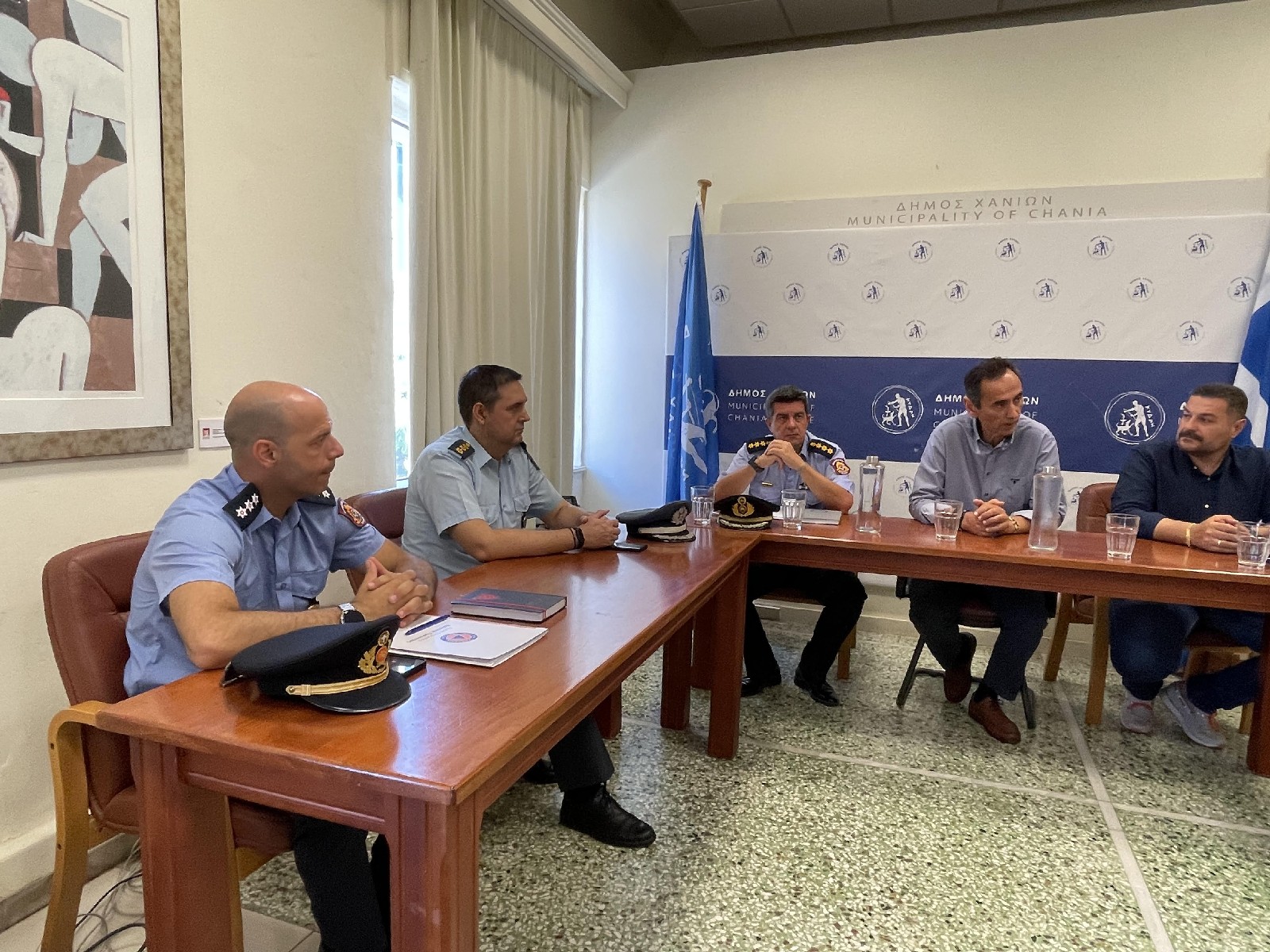 Στη σύσκεψη, η οποία πραγματοποιήθηκε υπό τον Δήμαρχο Χανίων, Παναγιώτη Σημανδηράκη, συμμετείχαν ο Αντιδήμαρχος Περιβάλλοντος, Πρασίνου και Καθαριότητας και Αντιπρόεδρος της Δ.Ε.ΔΙ.Σ.Α., Μιχάλης Τσουπάκης, ο Περιφερειακός Σύμβουλος, στον τομέα της Πολικής Προστασίας της Περιφερειακής Ενότητας Χανίων, Γιάννης Μανούσακας (Βλαντάς), ο Διοικητής Πυροσβεστικής Υπηρεσίας Χανίων, Πύραρχος Ξενοφών Τσιλιμιγκάκης, ο Β’ Υποδιευθυντής της Αστυνομικής Διεύθυνσης Χανίων, Αστ. Διευθυντής Γιώργος Σαρικάκης, καθώς και υπηρεσιακοί παράγοντες.