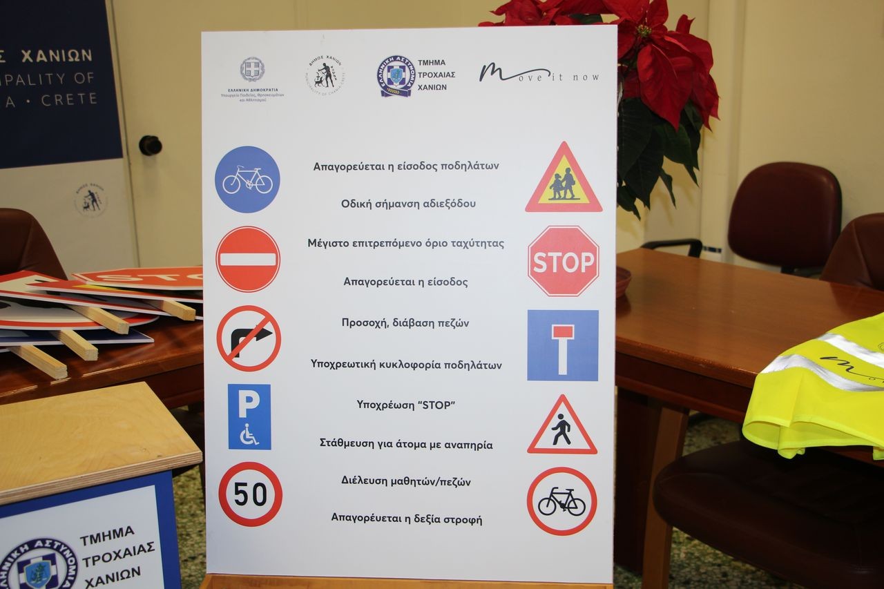 Ο Δήμος Χανίων πραγματοποίησε σήμερα, Τετάρτη 10 Δεκεμβρίου 2025, στην Αίθουσα Τύπου του Δημαρχείου, την παράδοση εκπαιδευτικού υλικού στο Τμήμα Τροχαίας Χανίων και το ΔΗΠΕΘΕ Κρήτης, στο πλαίσιο της ενημερωτικής πρωτοβουλίας Move It Now. Η πρωτοβουλία αποσκοπεί στην ενίσχυση της κυκλοφοριακής αγωγής και την καλλιέργεια κουλτούρας βιώσιμης κινητικότητας από τις μικρές ηλικίες.