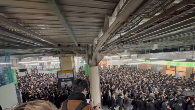 Video shows crazy overcrowding at a Tokyo train station after a power outage shut down major lines 😳🚆• Tokyo: Trains stopped, platforms jam-packed